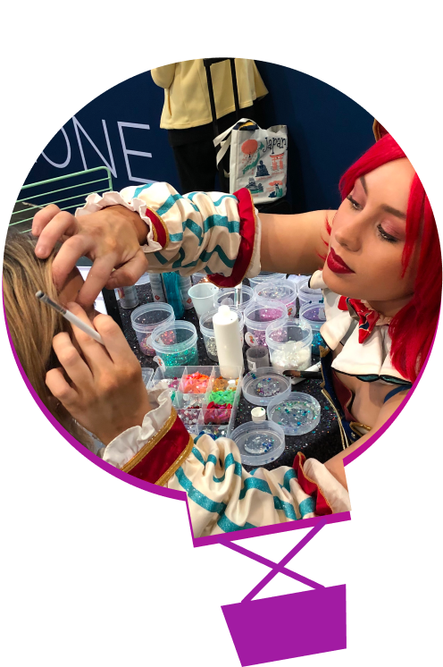 Our glitter bar will arrive on time at your event, fully equipped with everything and staffed by a fantastic glitter artist who truly knows their craft. The glitter bar is easy to set up and can be placed anywhere in the venue, whether your event is in a shopping centre or a grass field. For your convenience, we’ll also clean up the area around the glitter bar before wrapping things up – no mess left behind! Enquire now about hiring Fly by Fun’s glitter party entertainment or one of our glitter bars and ensure your event is a sparkling success.